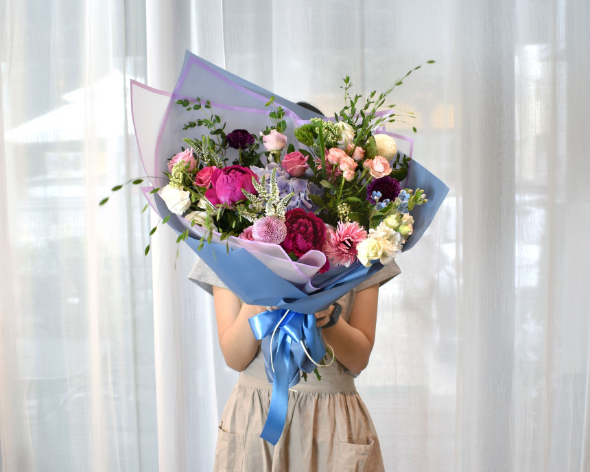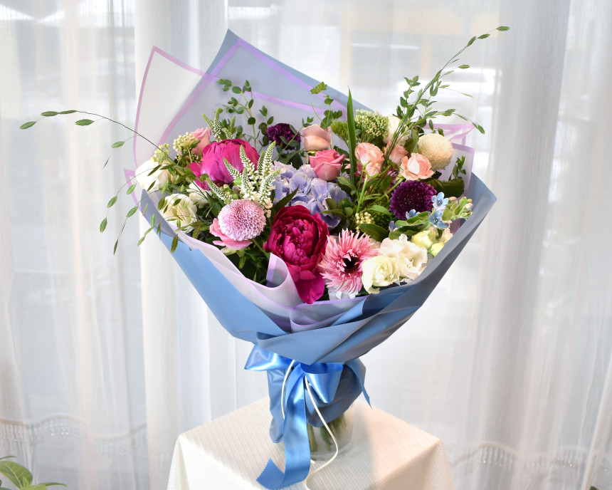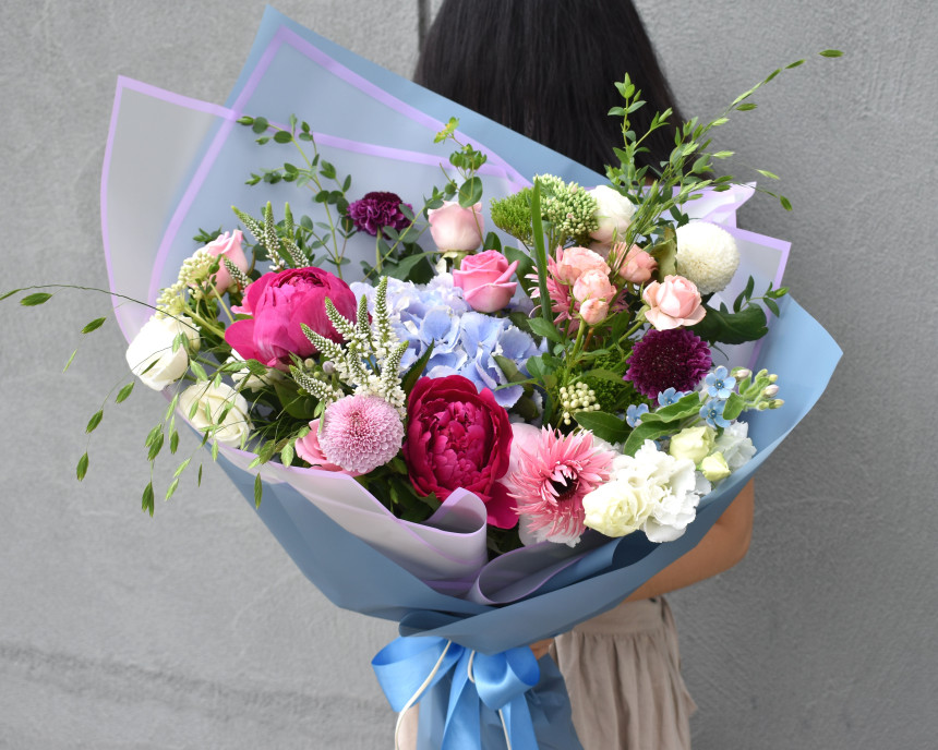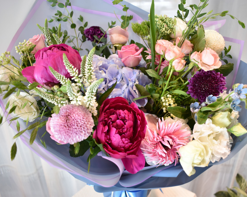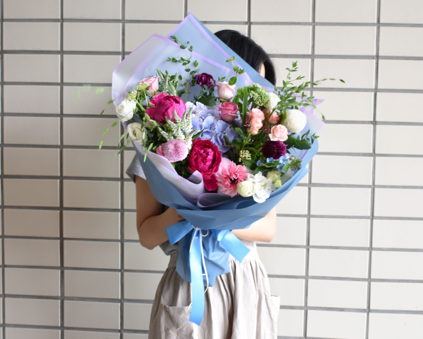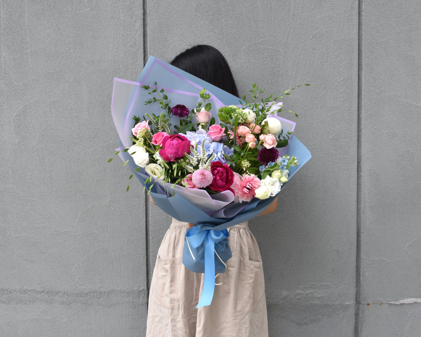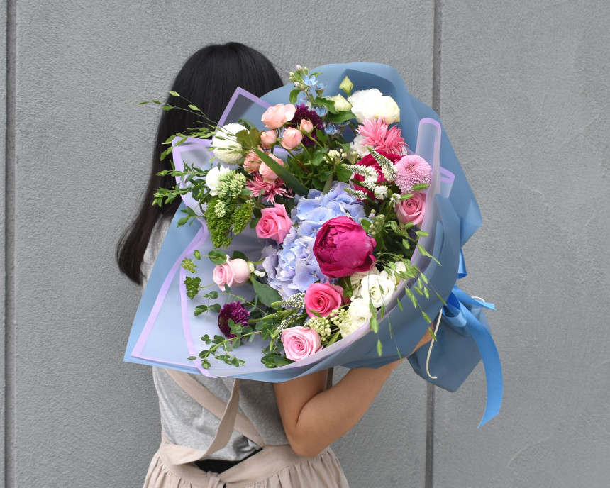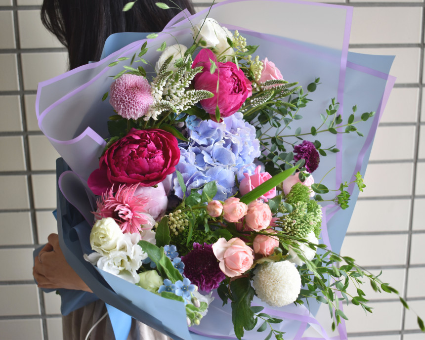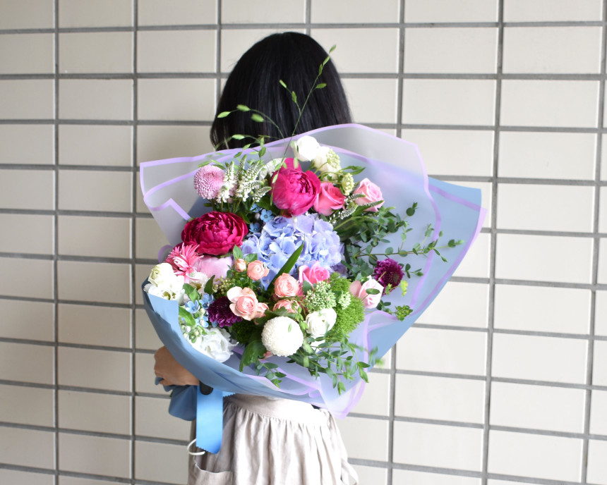 *소재소개:수국,장미,작약,거베라,리시안셔스,퐁퐁,베로니카,스카비오사,유칼립튜스