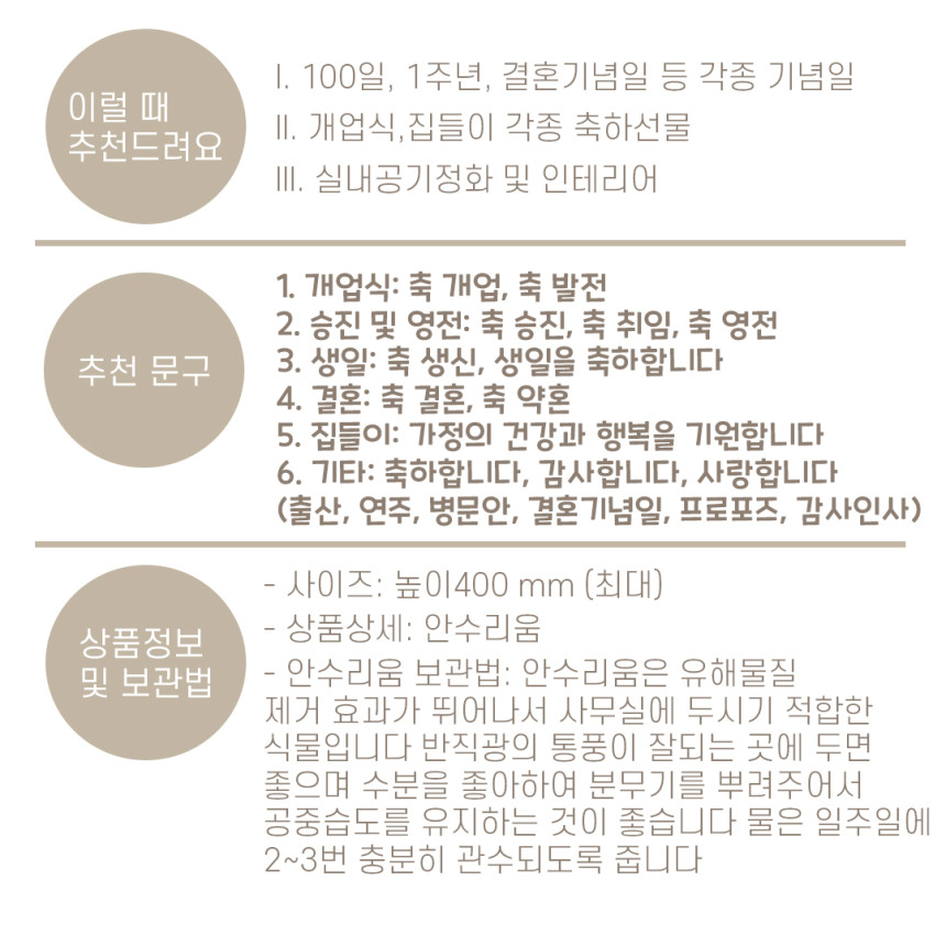 화분,꾸미기 식물,리본,색돌 등 부소재는 지역 및 계절에 따라 변동될 수 있습니다.