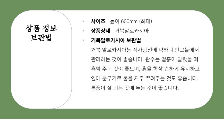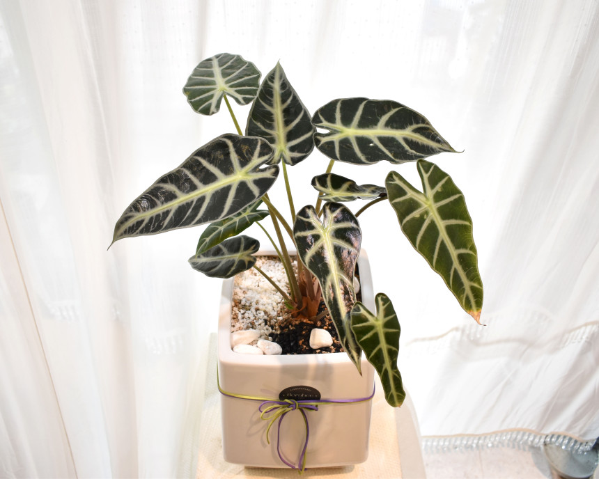매력적인 잎의 무늬를 가진 거북 알로카시아 입니다