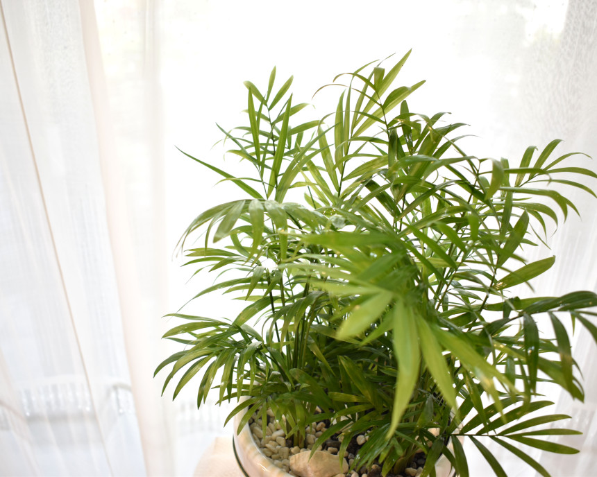 야자나무이지만 비교적 키가 작고 잎의 길이가 짧은 편이라