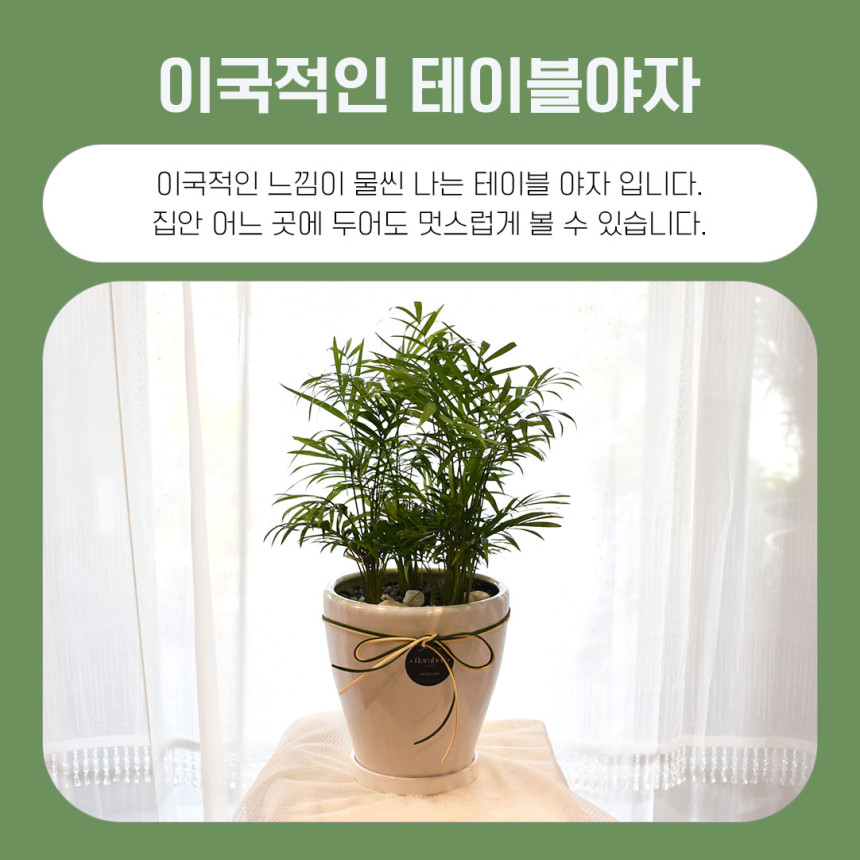 테이블위에 놓고 키우는 야자라고 하여 테이블야자라고 불립니다.