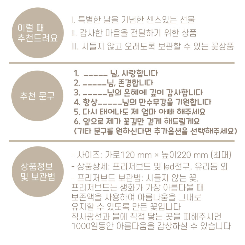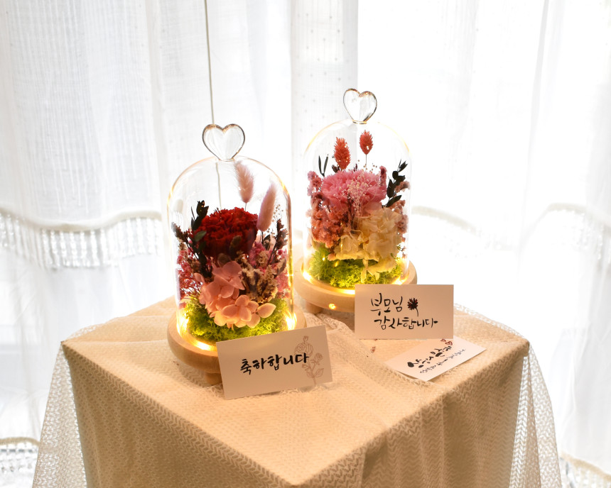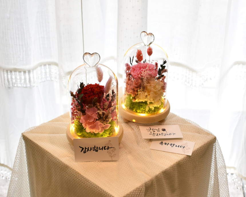 아름다운 프리저브드꽃들 사이로 고급스러운 모습을 연출하였습니다