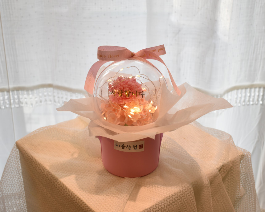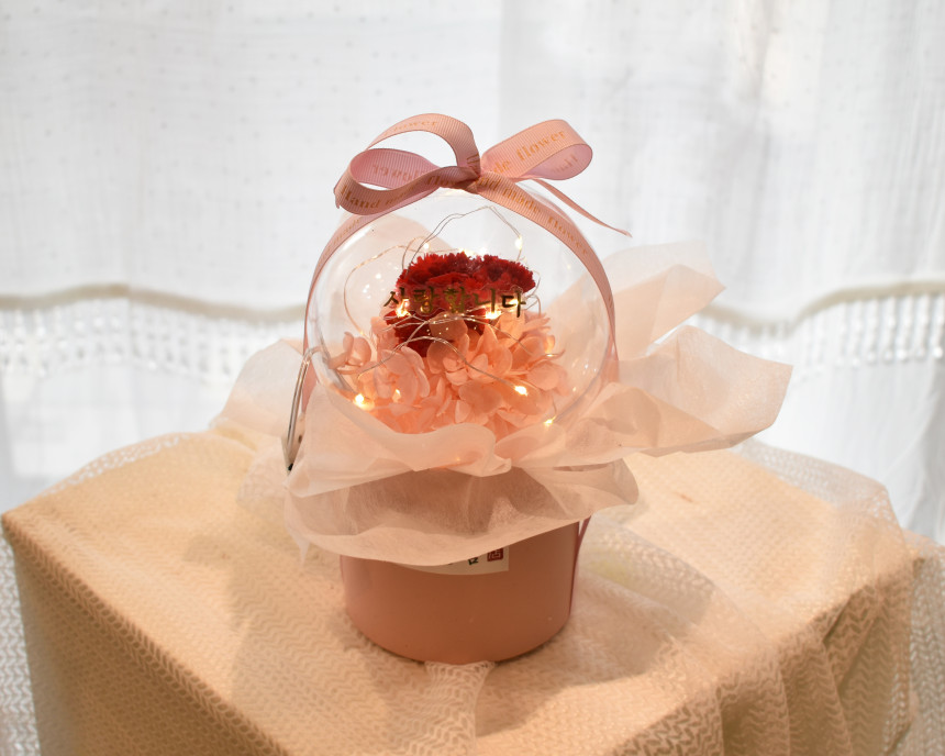 사랑을 담은 프리져브드 카네이션 LED 풍선센터피스"