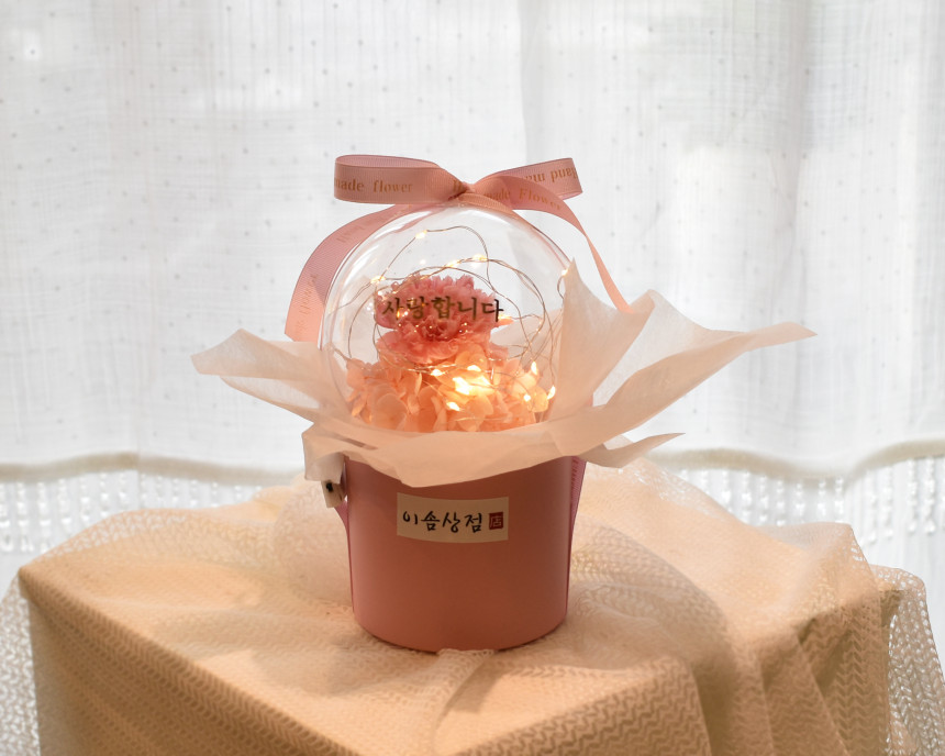 생화를 특수 보존 처리 용액으로 가공하여