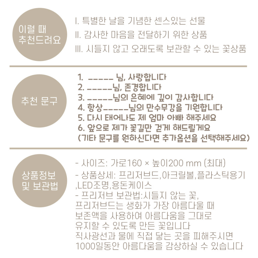 최대 5년까지 지속적인 아름다움이 유지되는 플라워입니다