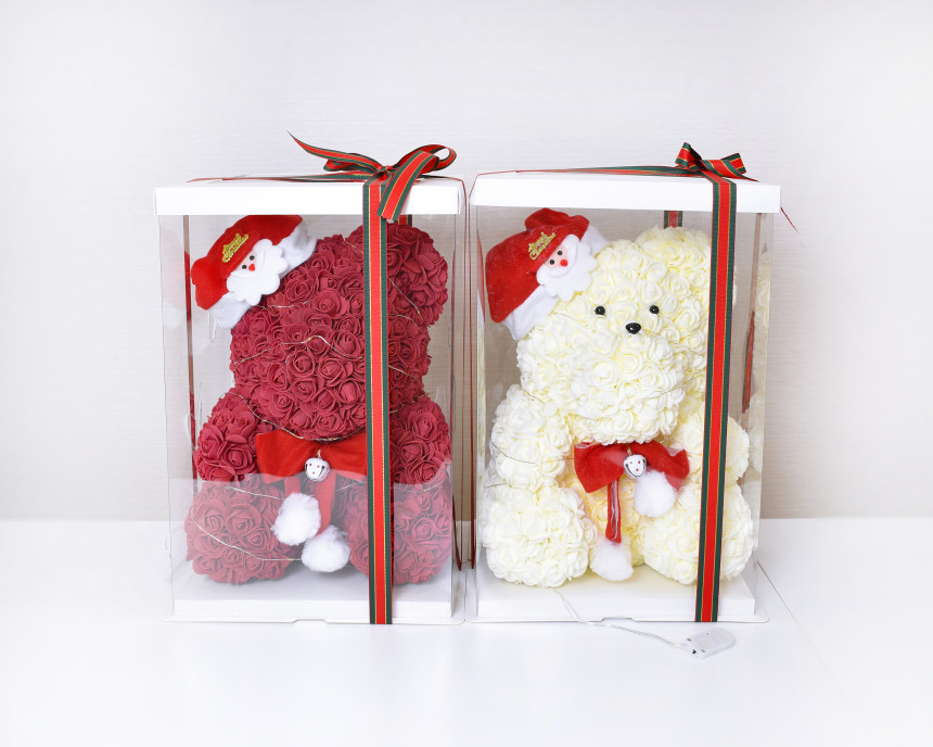 크리스마스 기획 상품으로 제작된 산타 장미곰돌이는