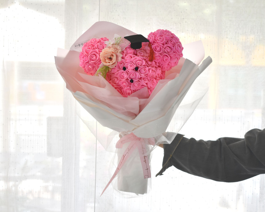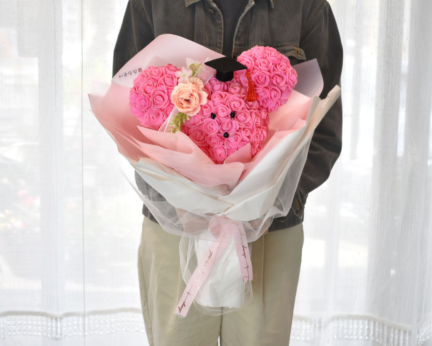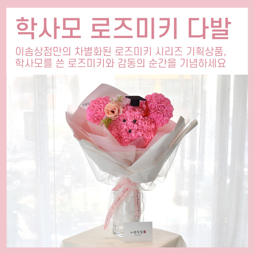 학사모를 쓴 로즈미키다발 디자인 상품을 소개합니다