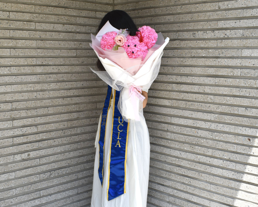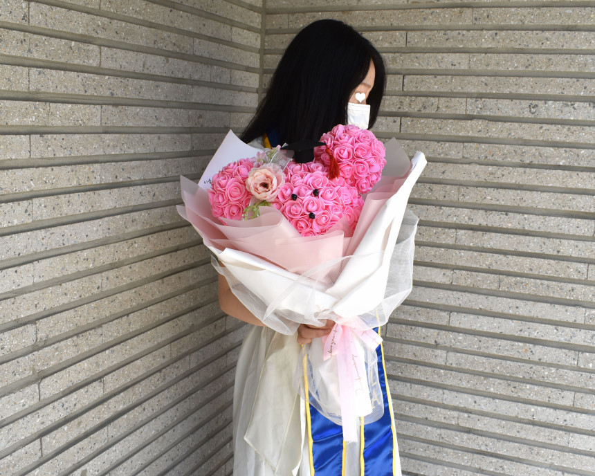학사모 로즈미키다발을 들고 야외에서 찰칵☆