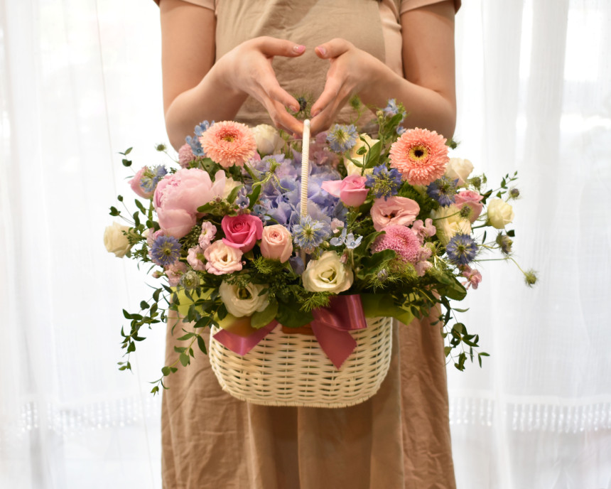 보기만해도 기분이 좋아지는 수국믹스 꽃바구니로