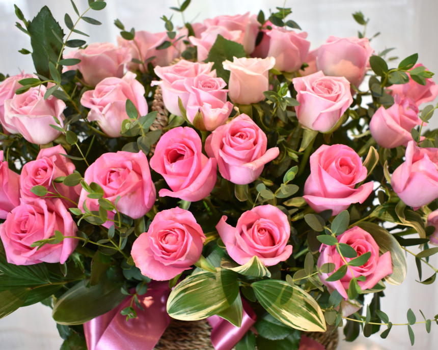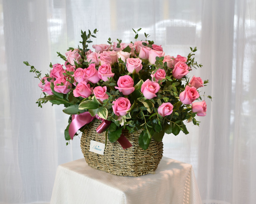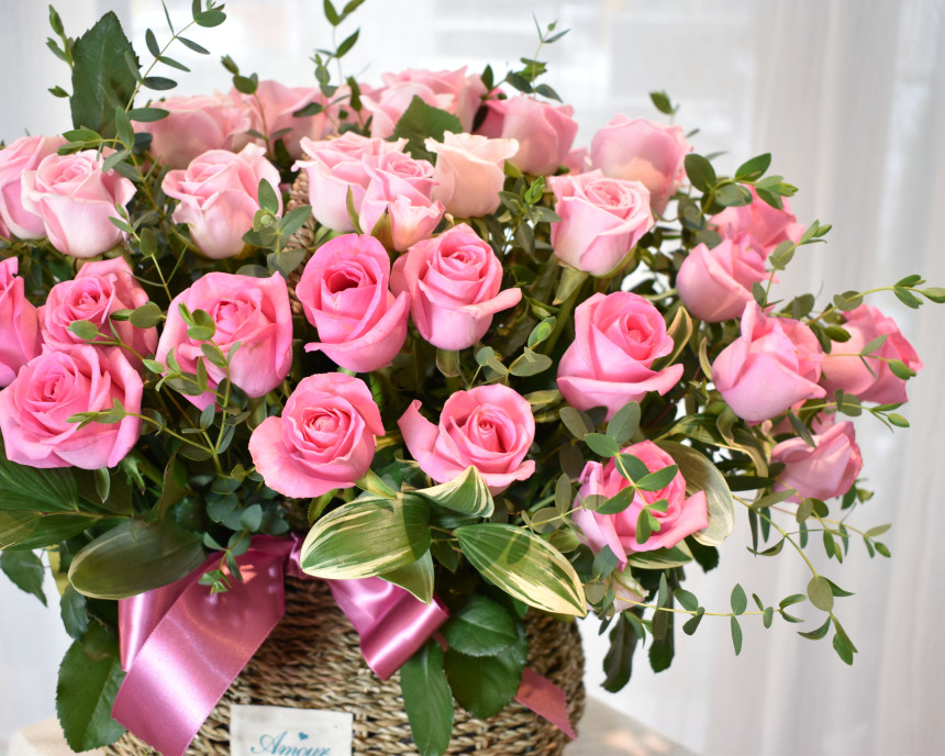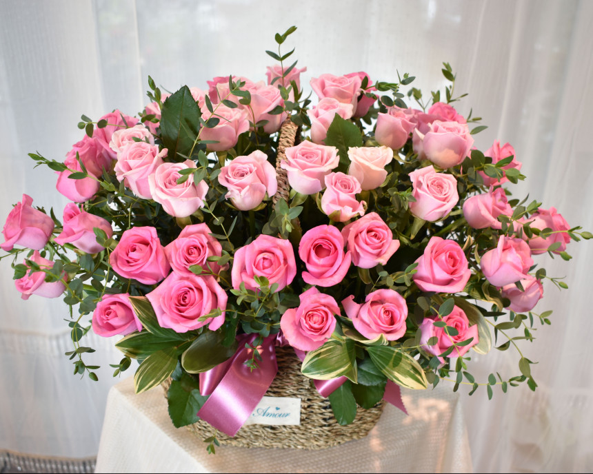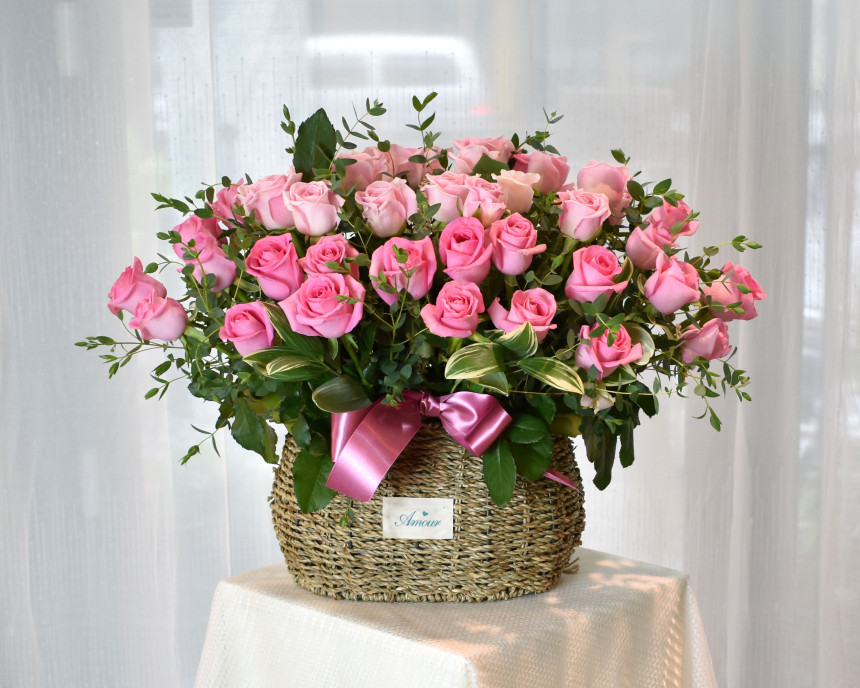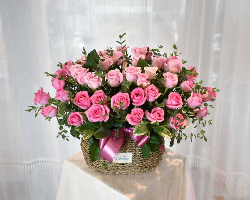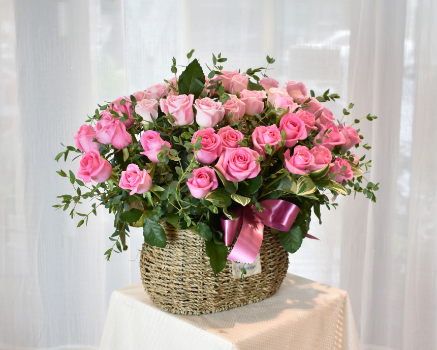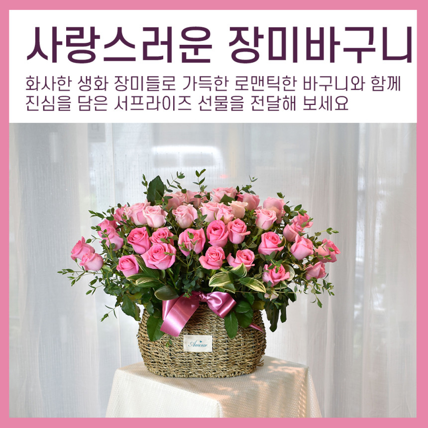 사랑스럽고 풍성한 생화 장미꽃바구니