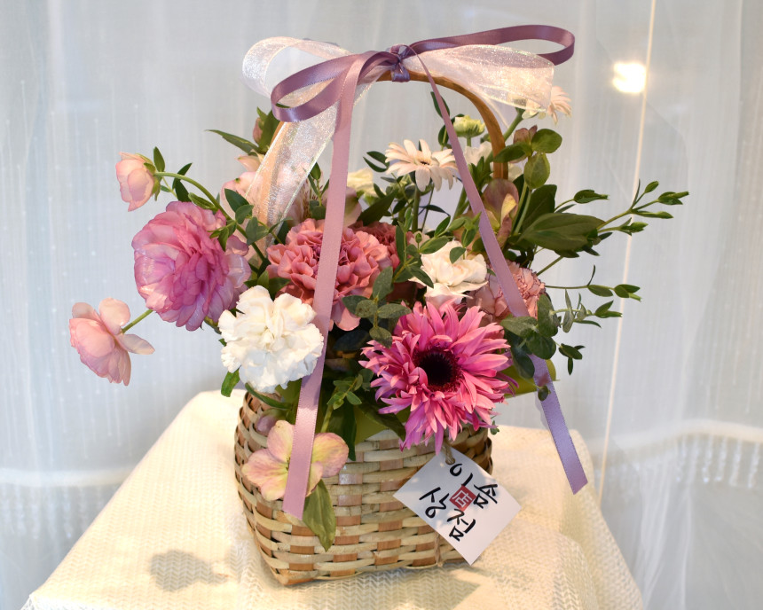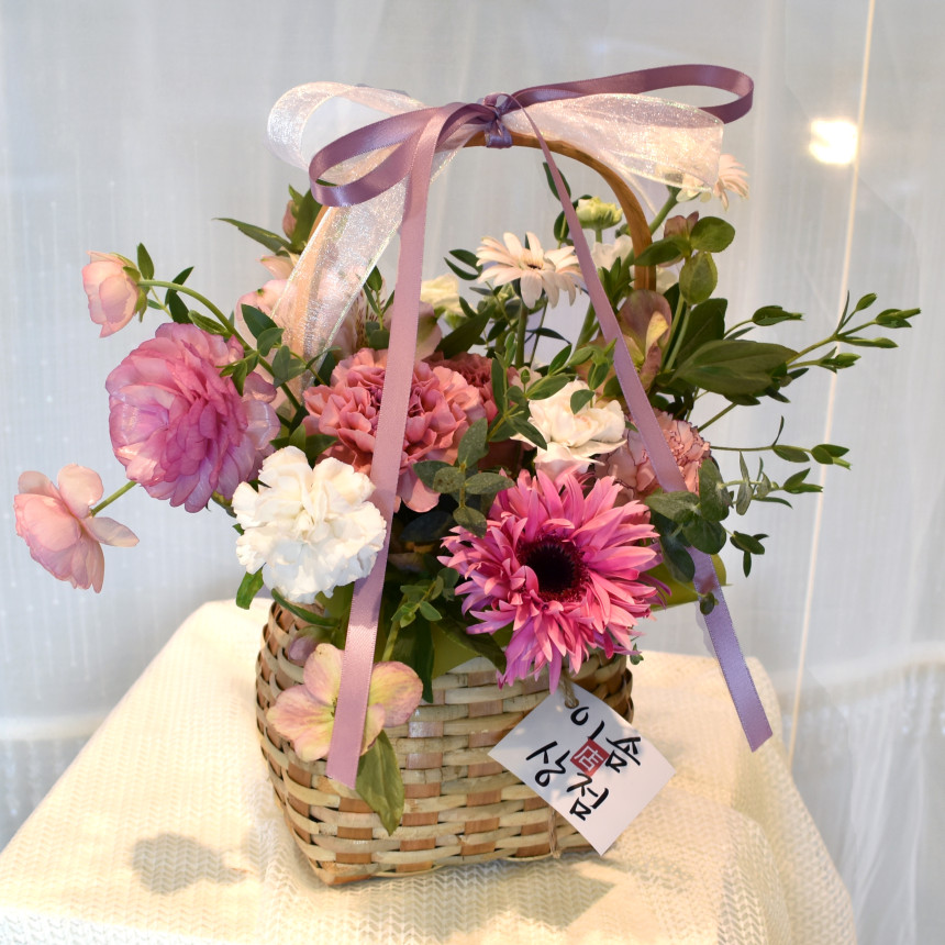 따뜻하고 러블리한 핑크 카네이션 생화 바구니입니다