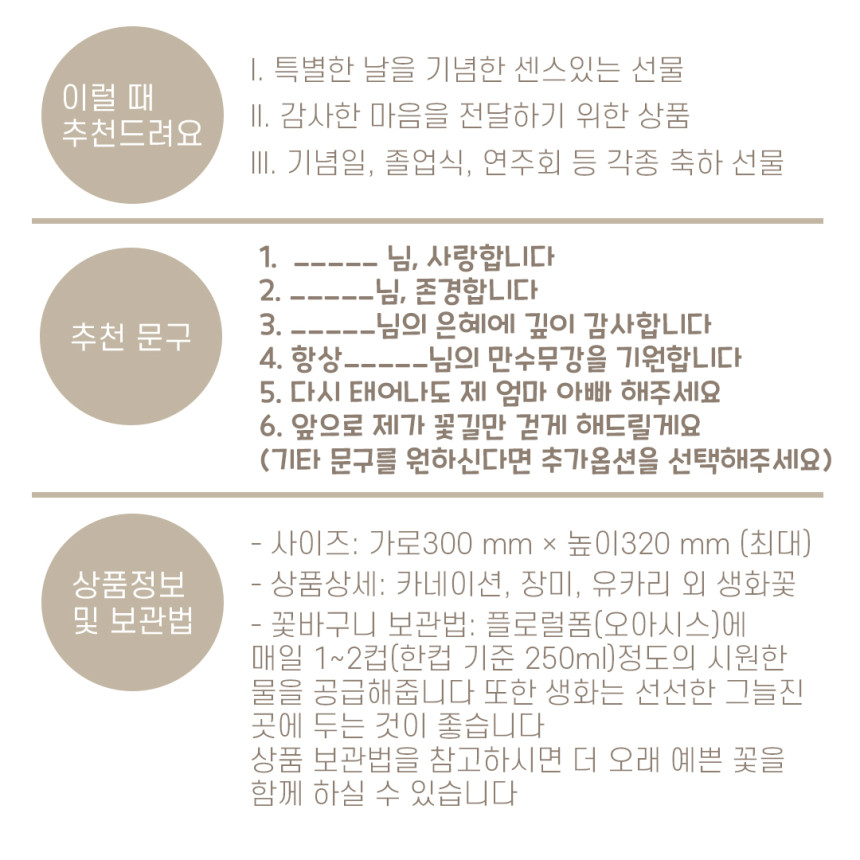 어버이날,스승의날 뿐만 아니라 평소에도 선물 하실 수 있도록 제작하였습니다 :)