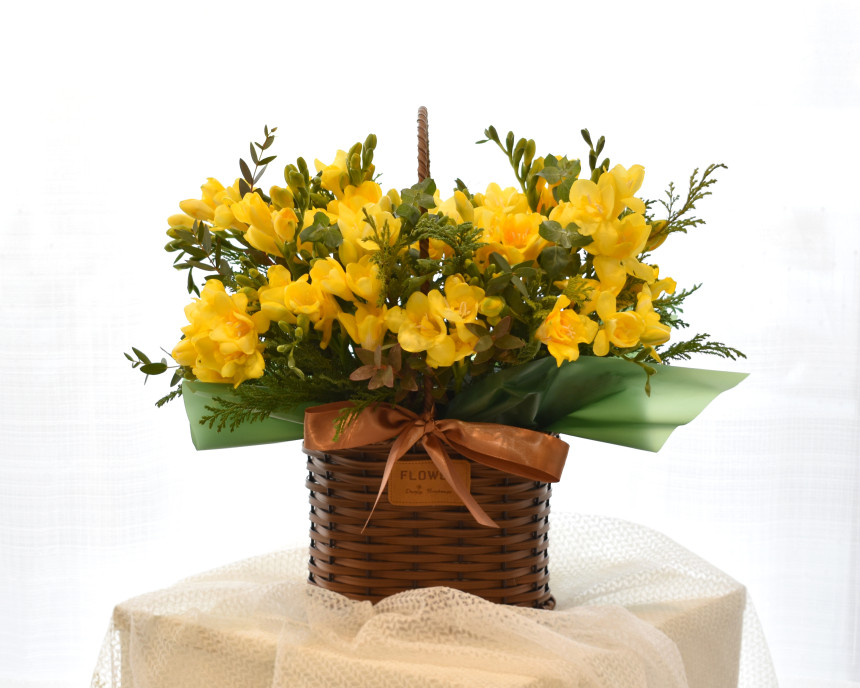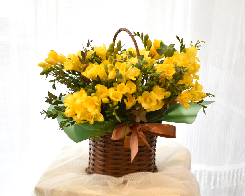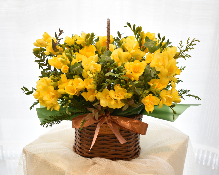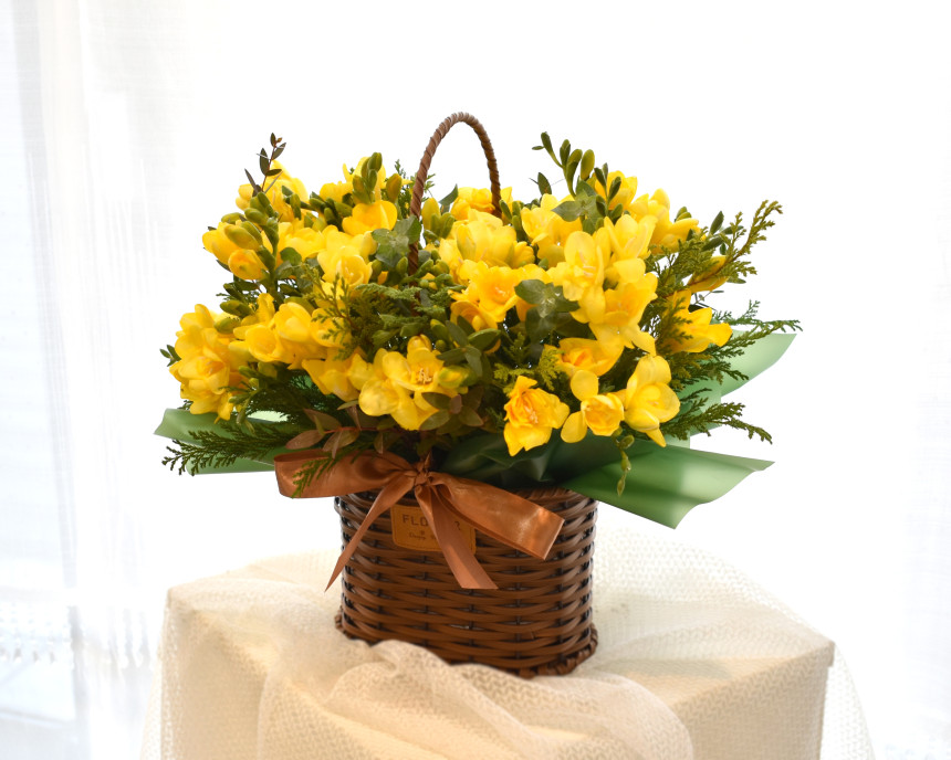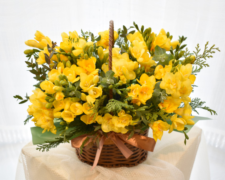 봉오리까지 피는 모습을 오래도록 보실 수 있는 프리지아, 후리지아 꽃바구니