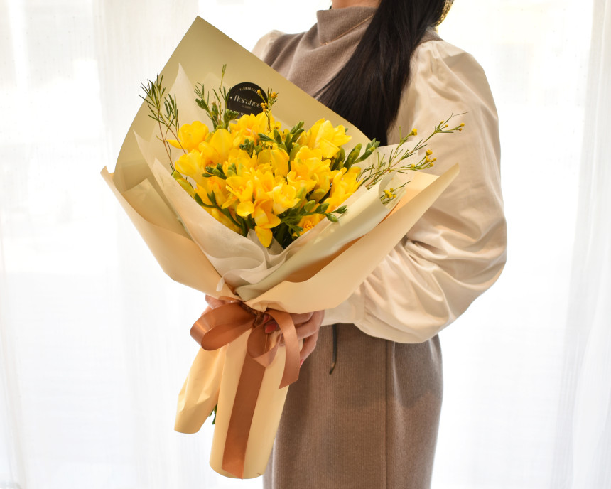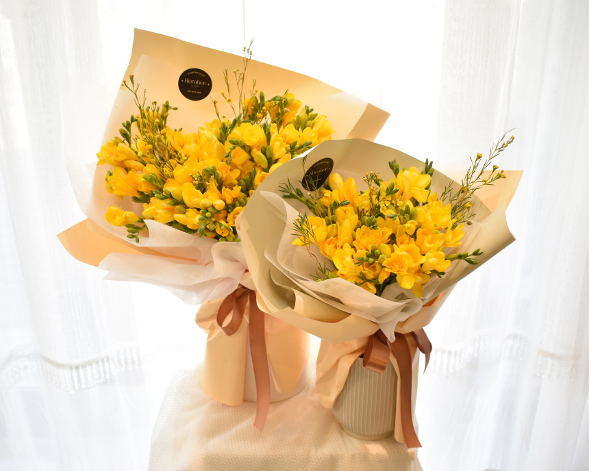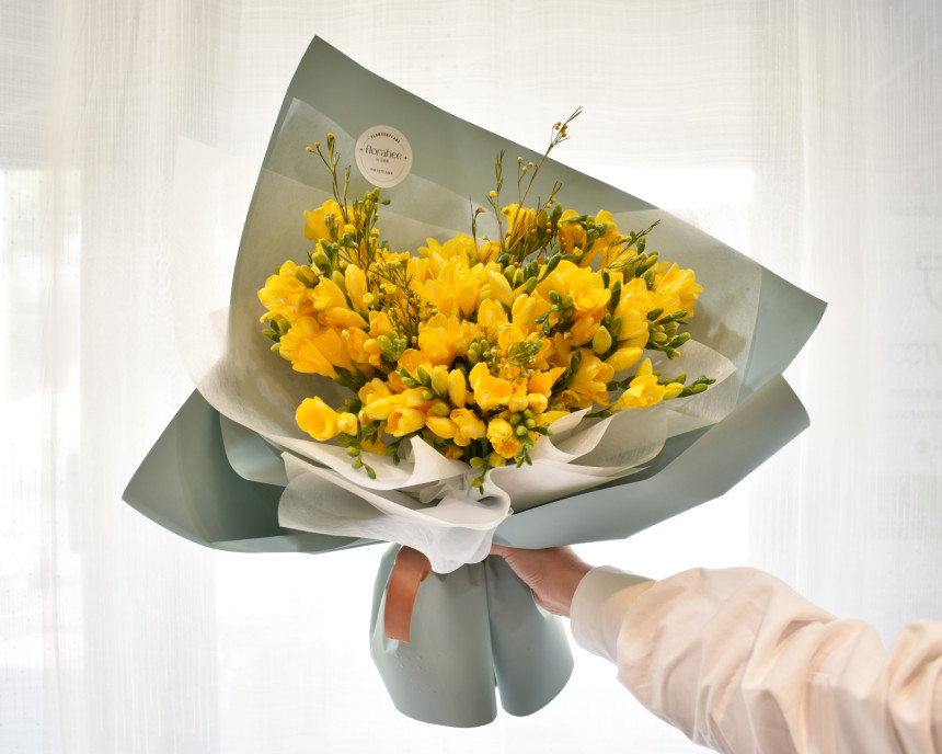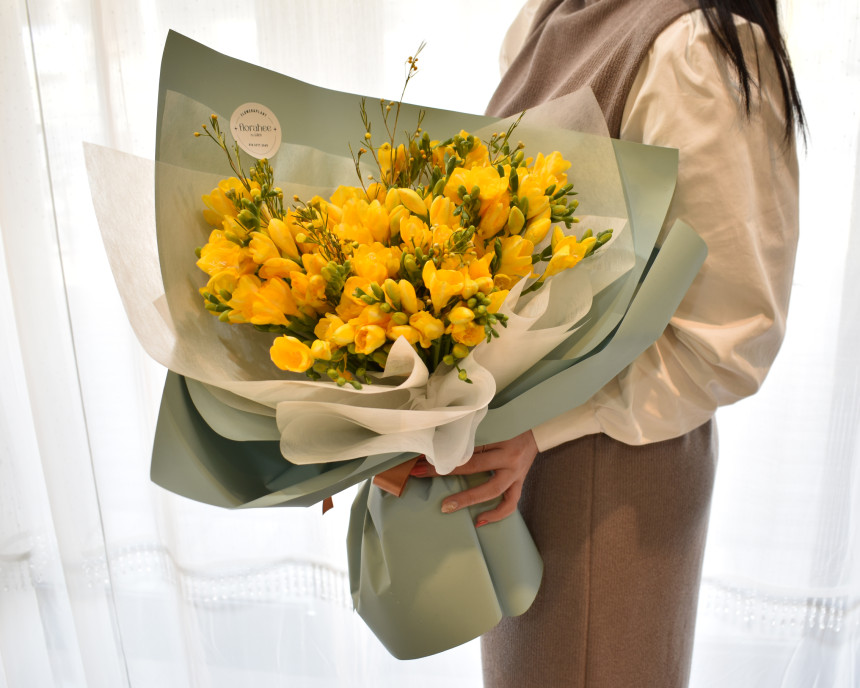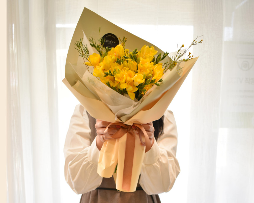 싱그러운 프리지아, 후리지아 꽃다발로 소중한 가족,친구,연인,지인에게 선물 해보시는건 어떨까요 ?