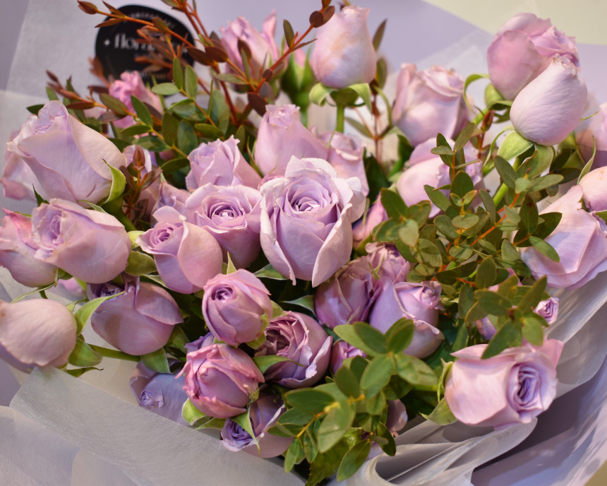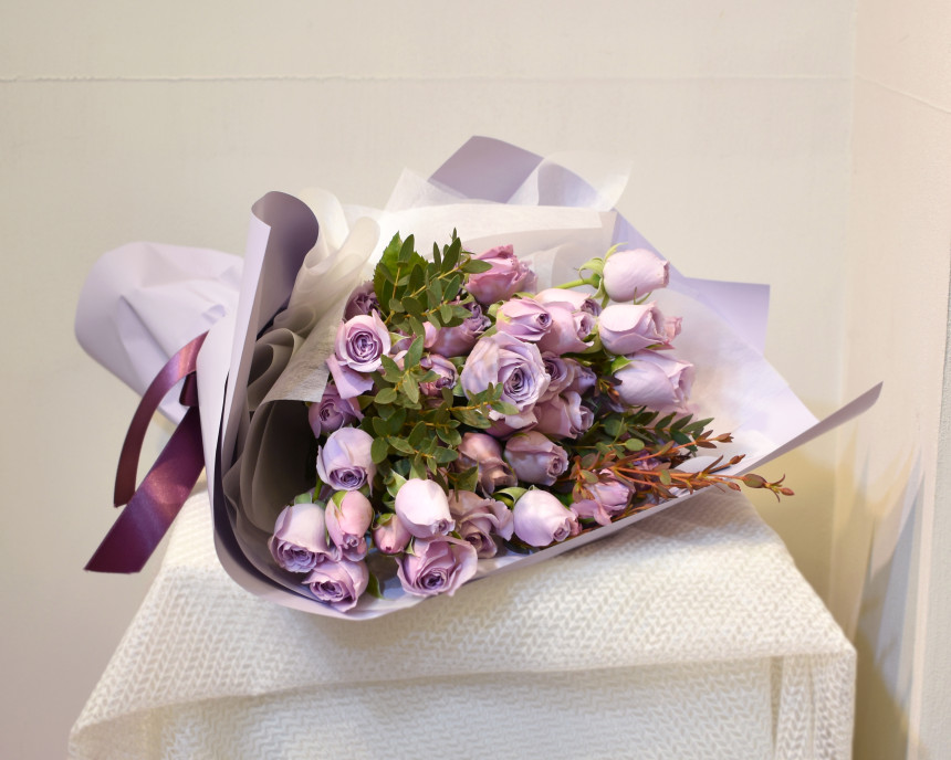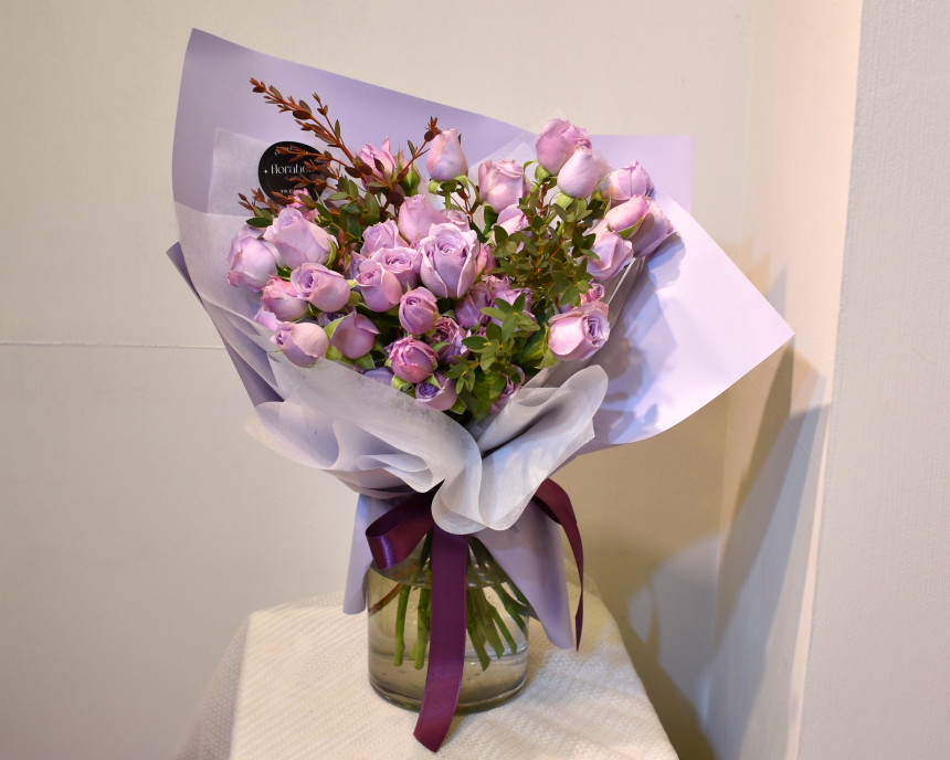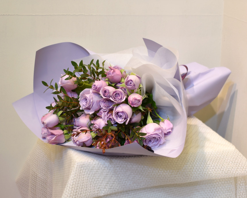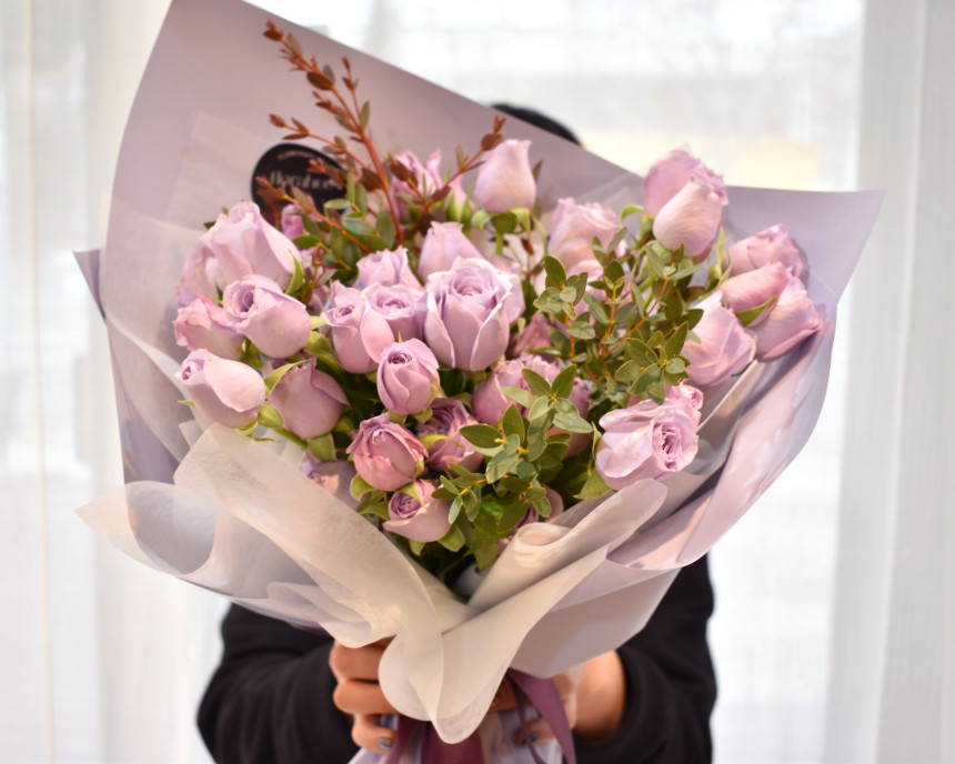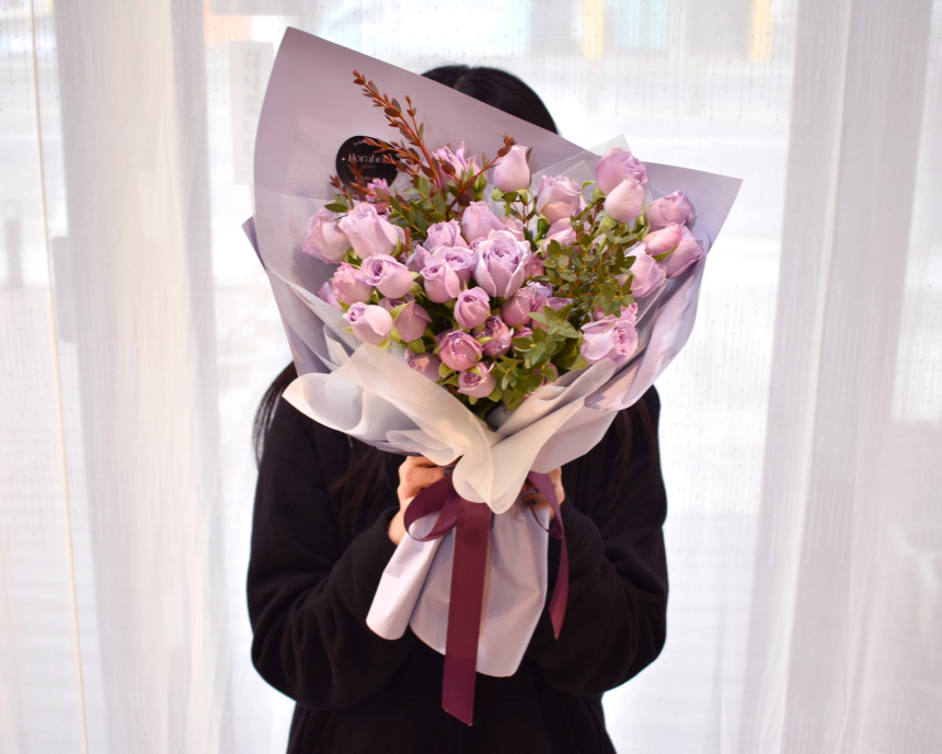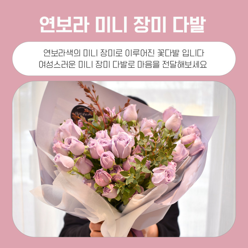 보기만 해도 기분 좋은 연보라 미니장미 꽃다발 입니다