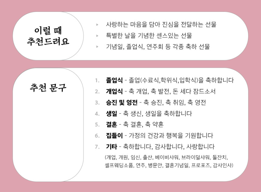 "각종 기념일(졸업식, 수료식, 학위식, 입학식, 승진, 기념일, 개업, 집들이선물,