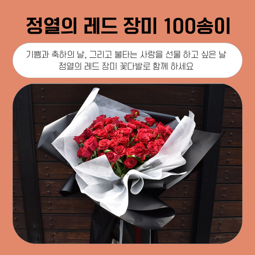 로맨틱한 무드의 레드장미 100송이 꽃다발