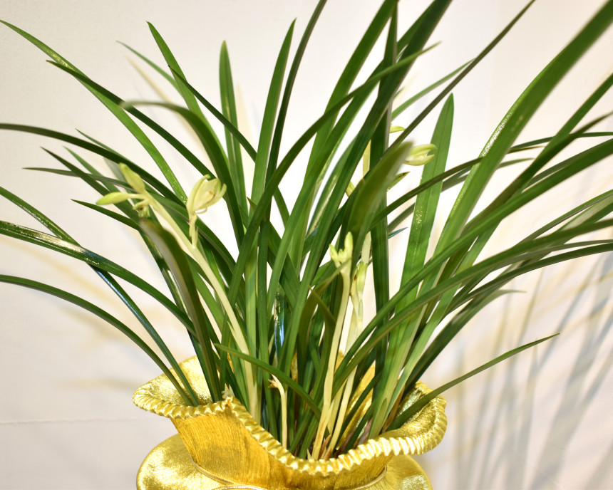 우아하게 뻗은 모습이 동양란의 품격을 한층 더 높여줍니다.