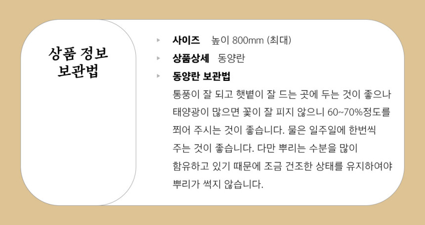 *동양란은 생물 특성 상 형태와 크기가 모두 다르며