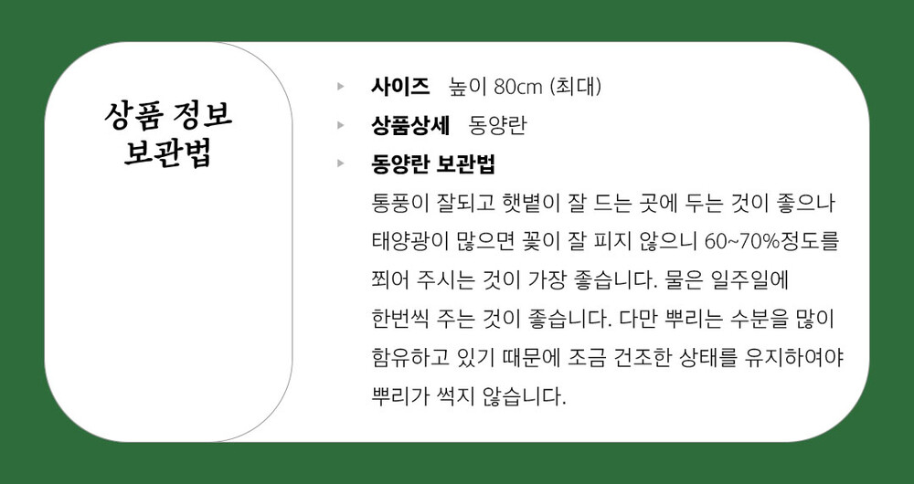 *동양란은 생물 특성 상 형태와 크기가 모두 다르며