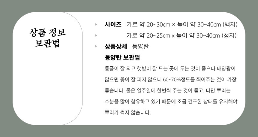 *동양란은 생물 특성 상 형태와 크기가 모두 다르며