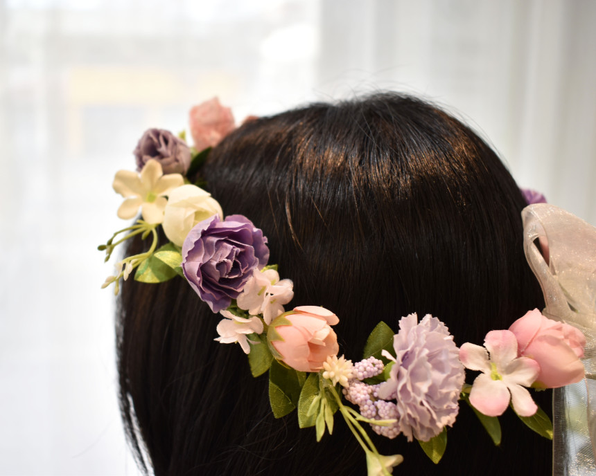 우아한 분위기를 연출 하실 수 있는 퍼플 꽃 화관 입니다