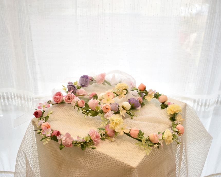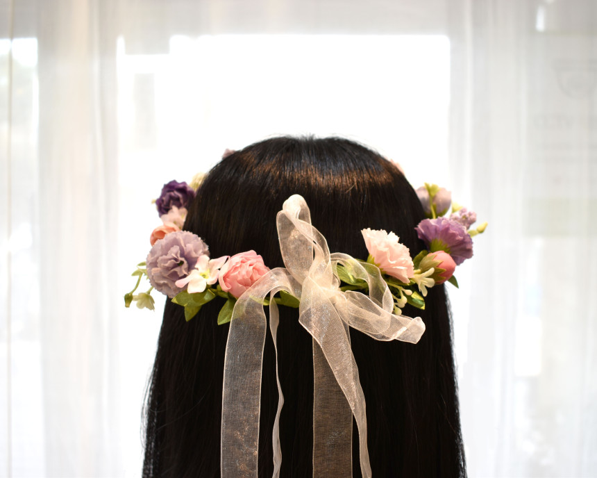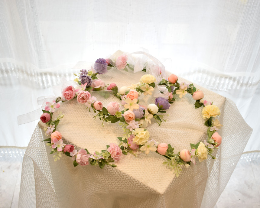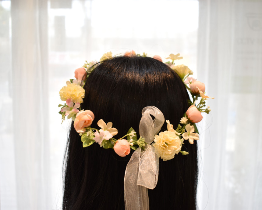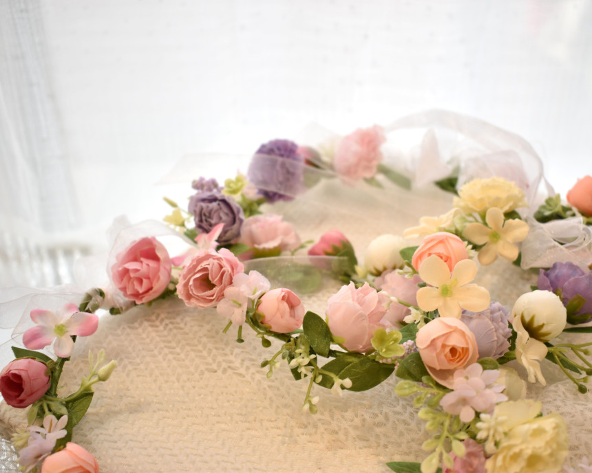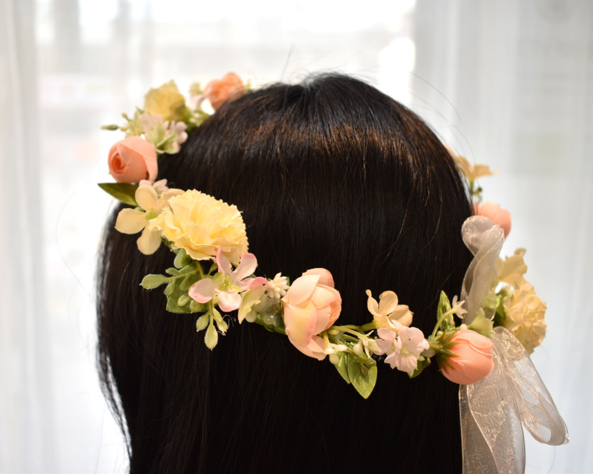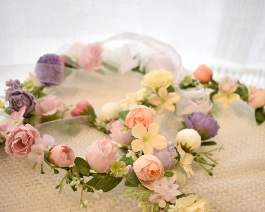 생화 만큼이나 예쁜 실크플라워로 제작되어진 꽃화관 입니다