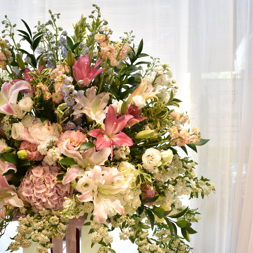 작약, 백합, 델피늄, 수국, 조팝, 리시안셔스 등