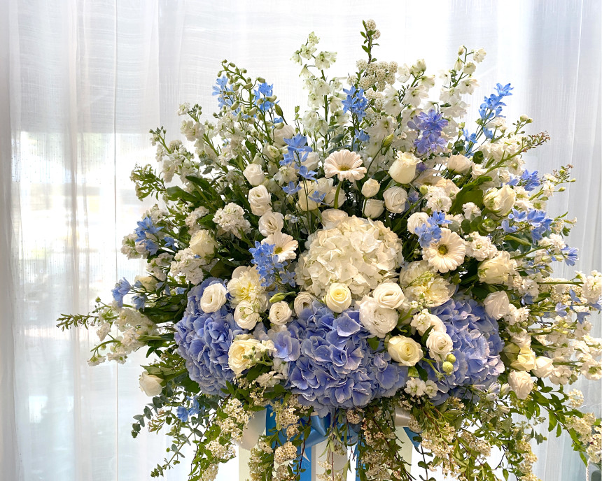 고급스러운 , 세련된 꽃들로 가득 꽂아 존재감 만으로도 특별한 신화환 입니다